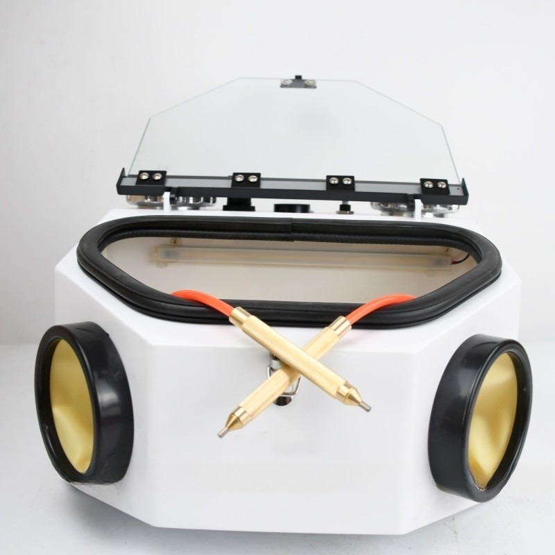 डबल टैंक दंत प्रयोगशाला रेत ब्लास्टर एलईडी प्रकाश दंत नोजल रेत ब्लास्टिंग के साथ चमकाने दंत चीनी मिट्टी के मुकुट